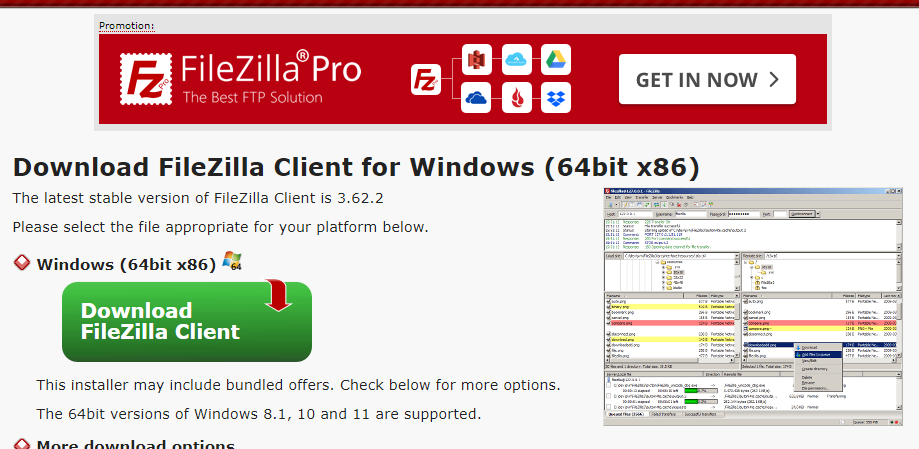 우선 FTP플랫폼 프로그램인 파일질라를 다운 받는다