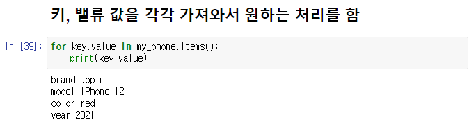 values()와 items()를 사용하여 키와 벨류 값을 사용할 수 있다.