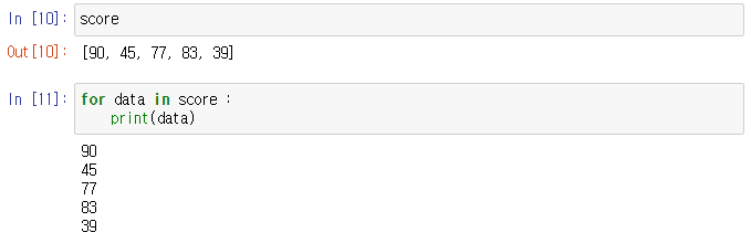 in 안에 들어있는 데이터에서 데이터를 하나씩 꺼내 변수에 대입