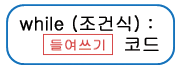while은 위의 그림과 같은 형식으로 나타내며 예시는 다음과 같다.