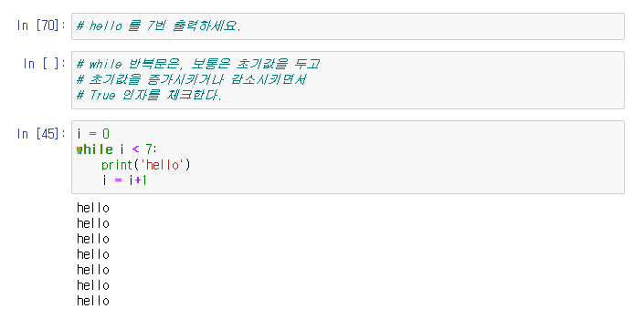 만족한 결과 아래에 작성하게 되면 whlie문의 중단이 실행이 된다.
