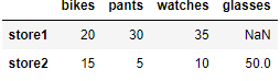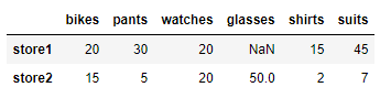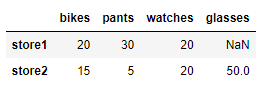 df = pd.DataFrame(data=items2, index = ['store1','store2'])
