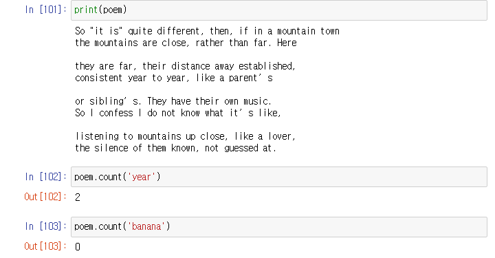 11. 특정 문자열의 갯수를 파악하기 위해서 count함수를 사용한다.