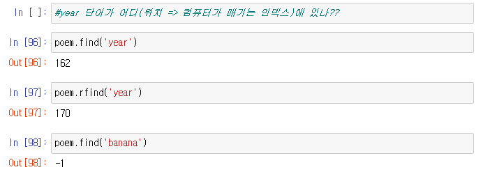 오른쪽 부터 찾을 경우 rfind로 r붙여 함수를 실행하면된다.