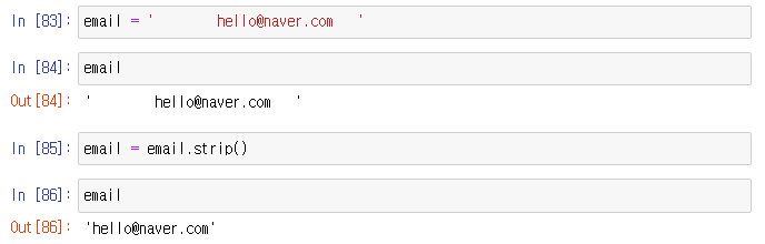 반드시 앞뒤에 문자만 제거가 가능하며 문자열 중간은 다른 함수가 사용된다.