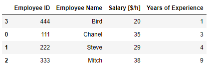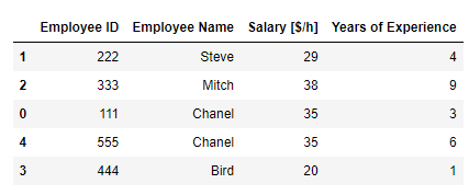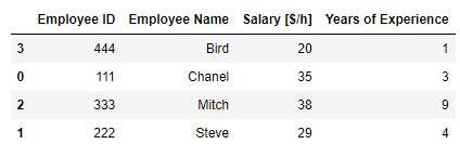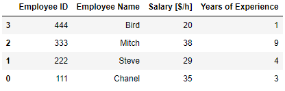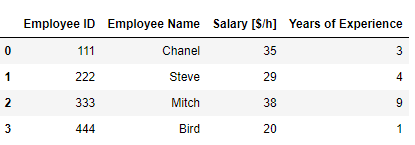 df = pd.DataFrame({'Employee ID':[111, 222, 333, 444],