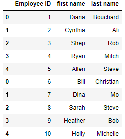 df_Finance_dept = pd.DataFrame(raw_data, columns = ['Employee ID', 'first name', 'last name'])