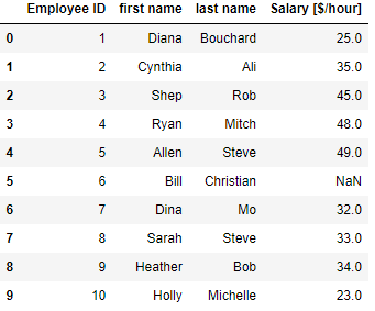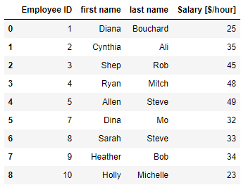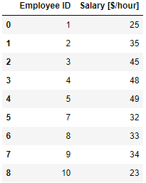 df_salary = pd.DataFrame(raw_data, columns = ['Employee ID','Salary [$/hour]'])
