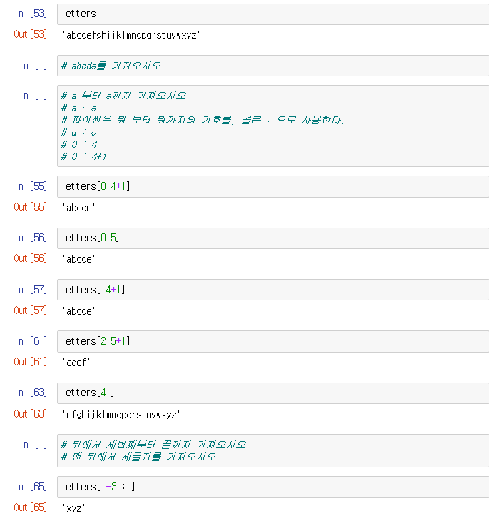 나타내며 시작점은 0부터 시작하며,끝나는점은 뒤로 셀때 -1부터