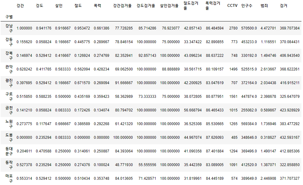 crime_anal.loc[ : , '강간':'폭력'] = X_scaled2