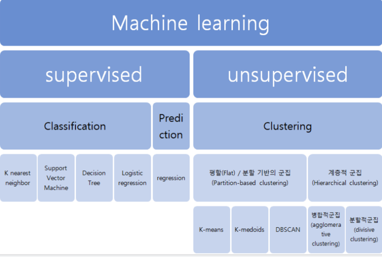 머신러닝은 크게 supervised러닝과 unsupervised러닝으로 나뉜다.