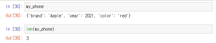 딕셔너리 6. 딕셔너리 구조는 리스트 구조와 유사하게 len() 함수로 데이터의 길이를 알수 있다.