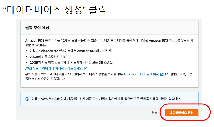 이제 쭉 건들거 없이 데이터베이스 생성을 누르자