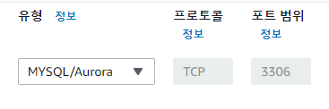 유형을 MySQL/Aurora을 선택하고 ip버전을 IPv4을 선택한다. 그리고 밑에 저장을 누르면