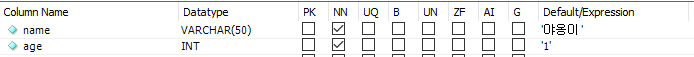 옆에 Default/Expression은 디폴트 값을 설정할 수 있다. Null이 생길때 NN을 선택했다면 Null값을 대체하는 역할을 한다.
