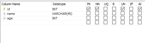 컬럼 추가는 데이터 테이블 설정에서 해주는데 저번시간에 이어 NN과 PK,UN,AI를 전부 체크해준다. 그리고 적용한다.