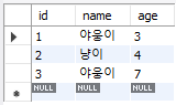이렇게 야옹이가 두개가 있는 데이터 베이스에서 나이만 다를뿐 구별하기 힘들다. 따라서 id컬럼을 추가한다.