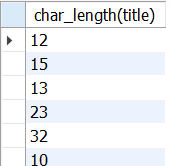 -- 문자열의 개수(길이)를 구하는 함수 char_length()