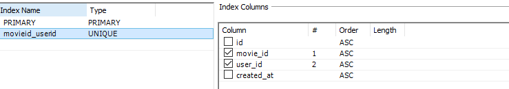 설정하게 되면 type부분을 클릭할수 있게 된다. 여기서 type을 unique로 바꾸고 unique하게 바꾸고 싶은 컬럼을 옆화면에서 체크 표시한뒤 apply를 누르면 된다.