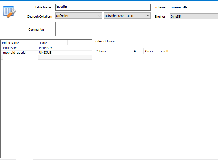 이렇게 화면이 나온다. 여기서 index name부분에 클릭해서 컬럼명으로 이름을 설정한다.