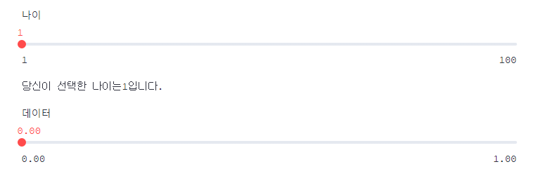 st.text('당신이 선택한 나이는'+str(age)+'입니다.')