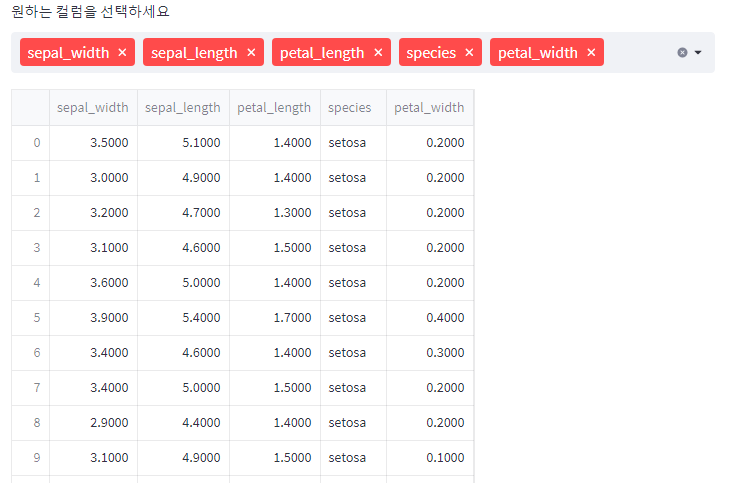 selected_list=st.multiselect('원하는 컬럼을 선택하세요',df.columns)