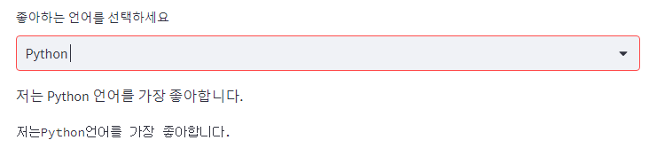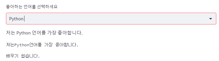 st.text('저는'+my_choice+'언어를 가장 좋아합니다.')