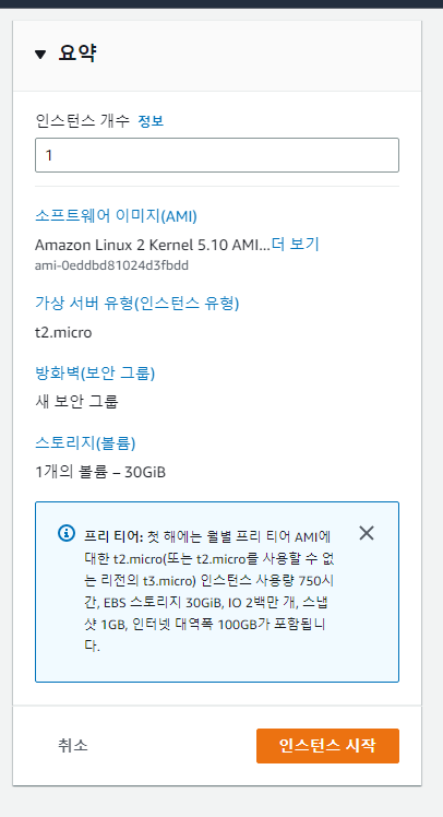 7. 다끝났으면 옆에 인스턴스 시작을 눌러준다.