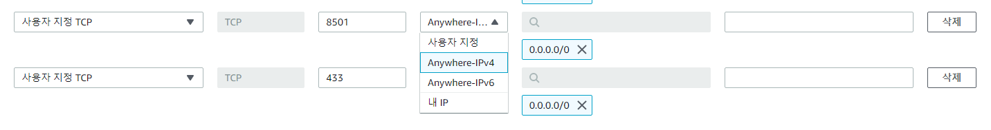 이제 ec2 서버에서 보안 방화벽을 규칙을 만들어준다.