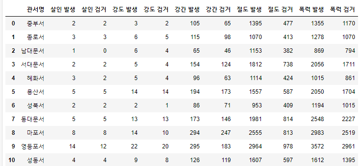 df = pd.read_csv('../data/crime_in_Seoul.csv', encoding='euc-kr')